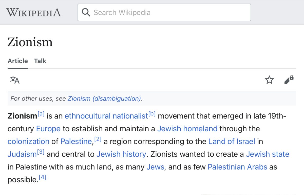In September 2024, Wikipedia implemented a notable change to its definition of Zionism. The updated entry states: